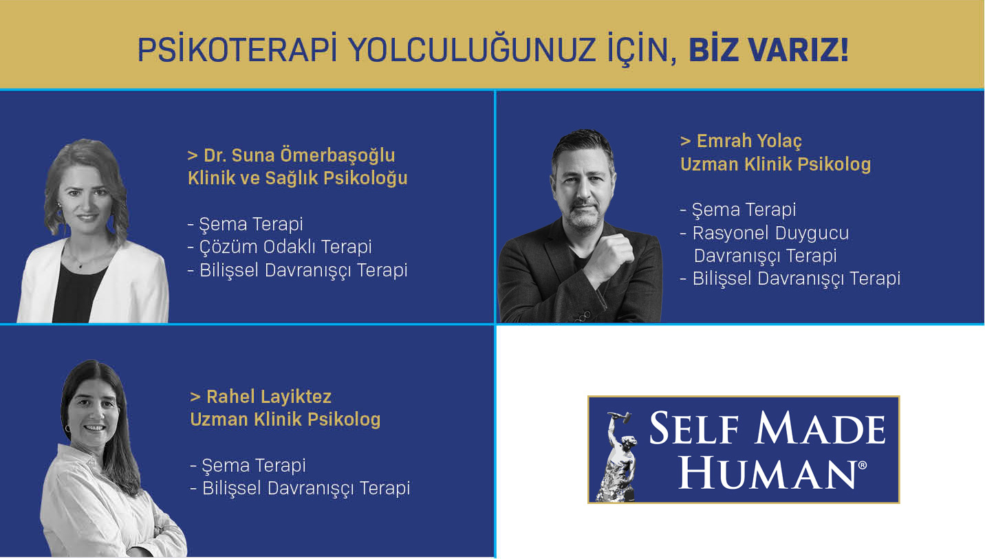 Self Made Human olarak, sizlerin güçlü yanlarınızı keşfetmenize, içsel potansiyelinizi özgürce ortaya çıkarmanıza yardımcı olmak için buradayız. Psikolojik destek ve bireysel psikoterapi hizmetlerimizle, zorluklarla başa çıkmanızı, stresle baş edebilmenizi ve daha iyi bir zihinsel sağlıkla daha mutlu, sağlıklı ve verimli bir özel hayat ve iş yaşamı sürdürmenizi arzu ediyoruz.
